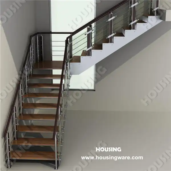 Residental mono Stringer Customized metal Railing l shape Straight Staircase